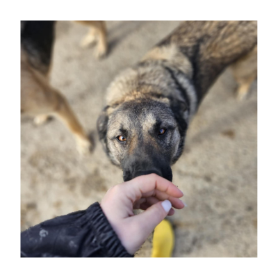 Ich habe einen tollen, freundlichen Charakter und bin durch das Shelterleben gut sozialisiert. Über menschlichen Besuch freuen wir uns immer riesig. Dieser muss dann jedoch schon standfest sein, denn vor lauter Begeisterung vergessen wir manchmal unsere Größe und Kraft.