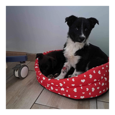 Gefunden wurde ich zusammen mit Schwester Gelsey an einem Fluss. Marias Tierärztin Claudia sah uns und versuchte uns zu helfen, doch dies schlug am ersten Tag fehl und sie kam wieder um uns zu füttern. Schließlich gewann sie unser Vertrauen und konnte uns einfangen. Zum Glück, denn ich hatte eine unschöne Wunde am Bein. Claudia kümmerte sich rührend um uns und versorgte mich und Gelsey.